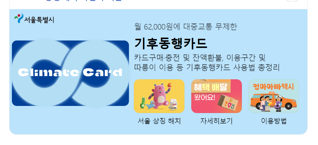 정부의 정책 중 하나인 기후 동행카드인데요. 62000원으로 대중교통을 무제한으로 이용할 수 있는 장점이 있어요. 평일 5일 출퇴근을 기준으로 해도 약 8만 원 정도의 교통비가 발생하는데 62000원으로 이용할 수 있다면 정말 큰 장점이 아닌가 싶어요. 그럼 기후 동행카드 신청방법에 대해 자세히 알아봐요.