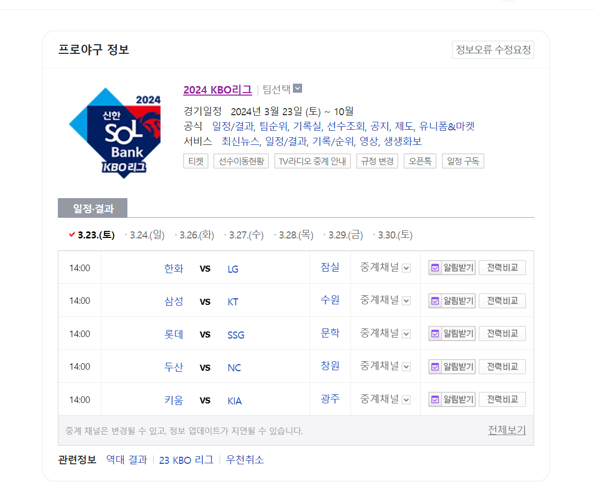 2024 프로야구 개막전 예매, 모바일 중계 바로가기